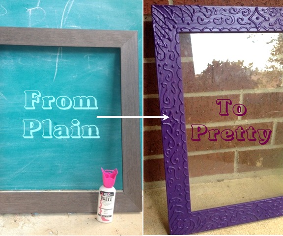 First I found a nice large frame with about a 2″ flat surface to paint on. I then free handed a swirly design on the frame with some puff paint and let that dry overnight. Please pardon the horrible drawing, next time I won’t free form paint, but sketch it out first. I am just not that skilled in the art department.