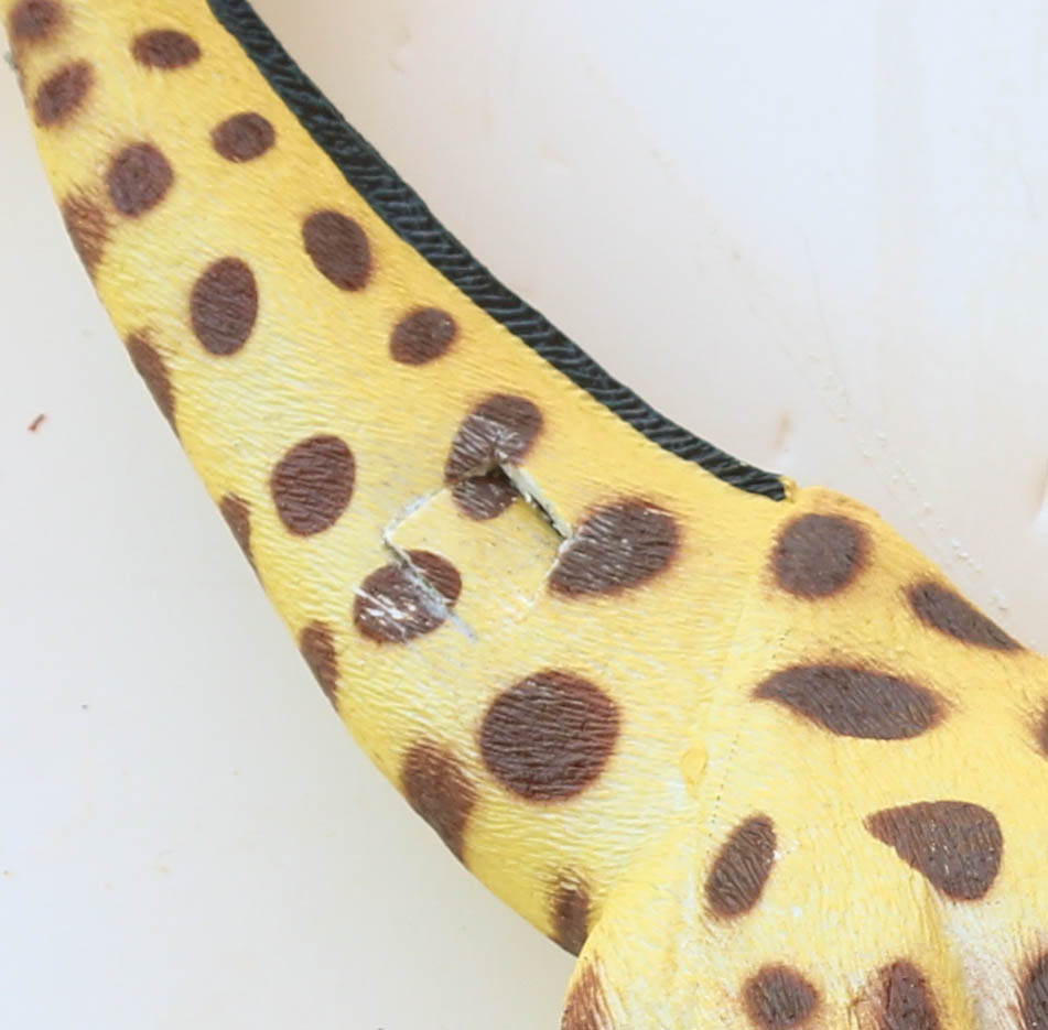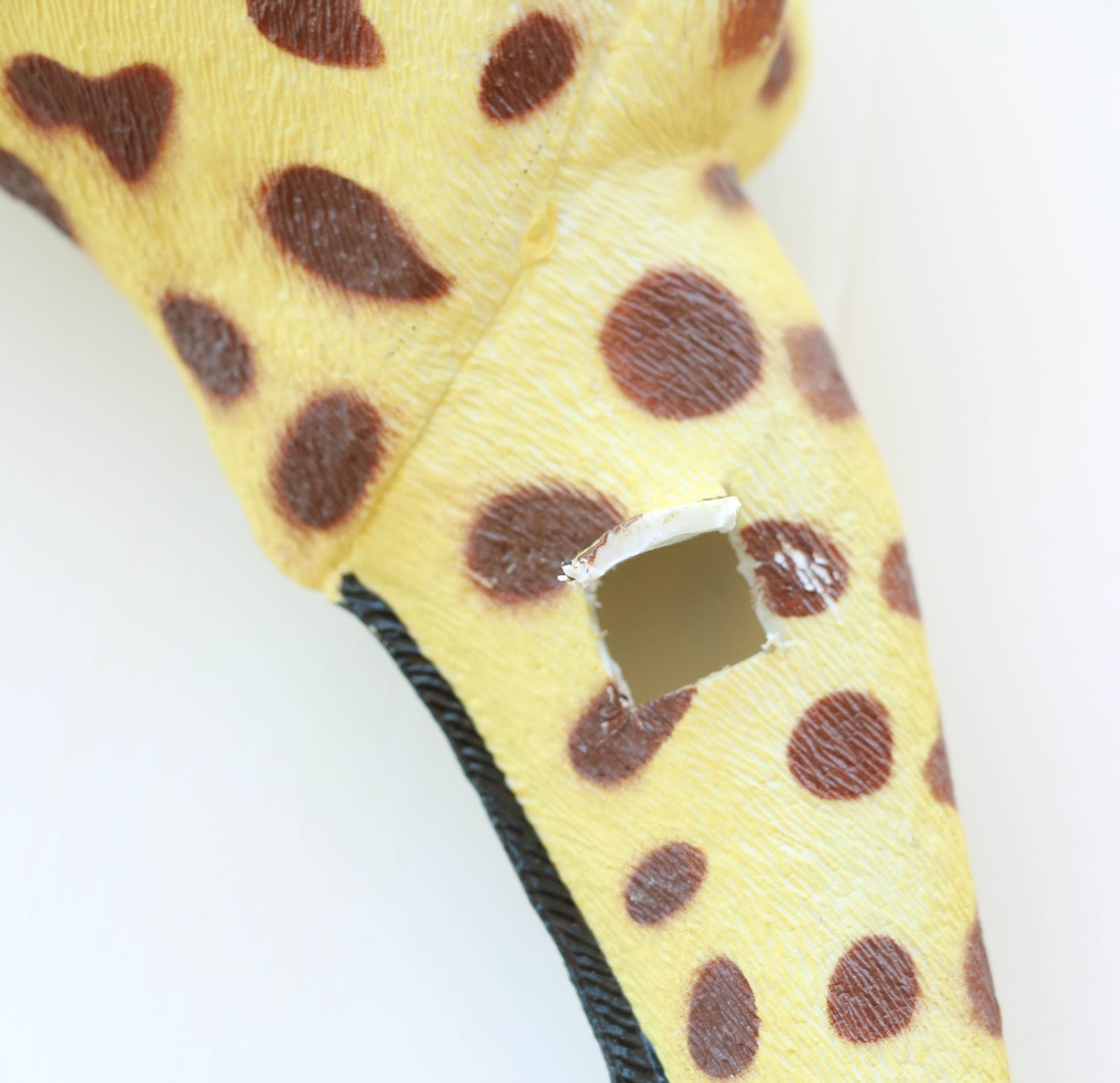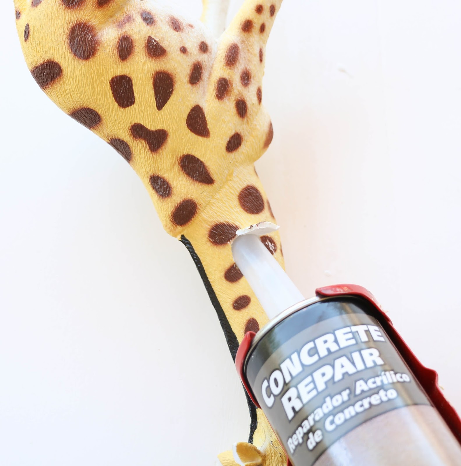 Take your giraffe and cut a small hole in the neck so that you can fill the body with the concrete mix.