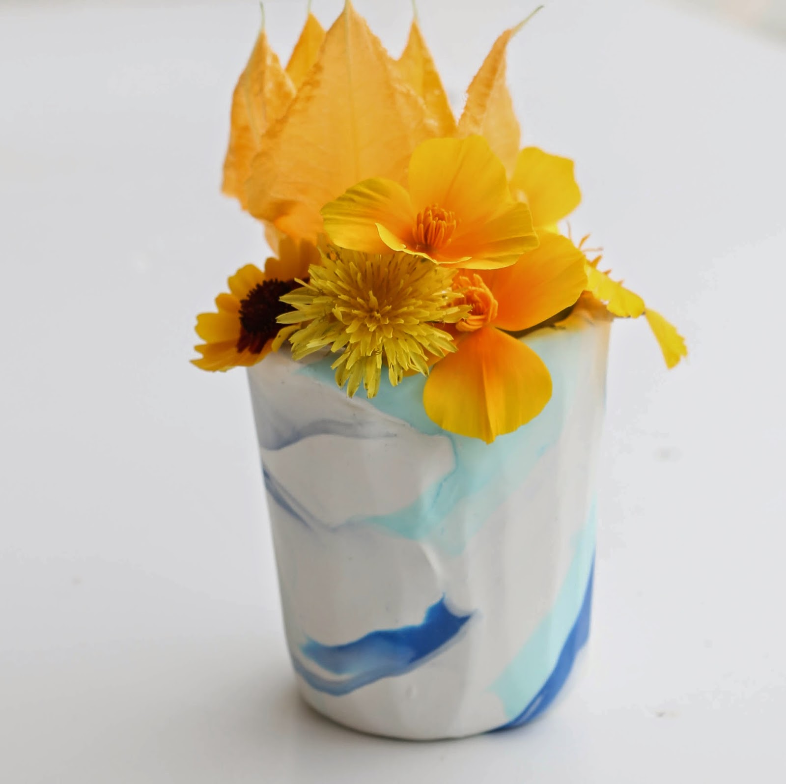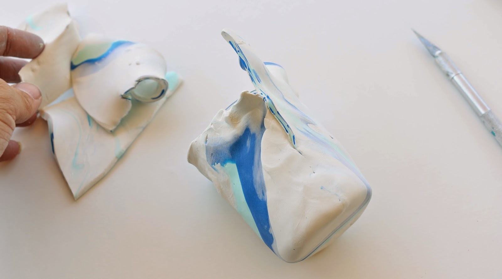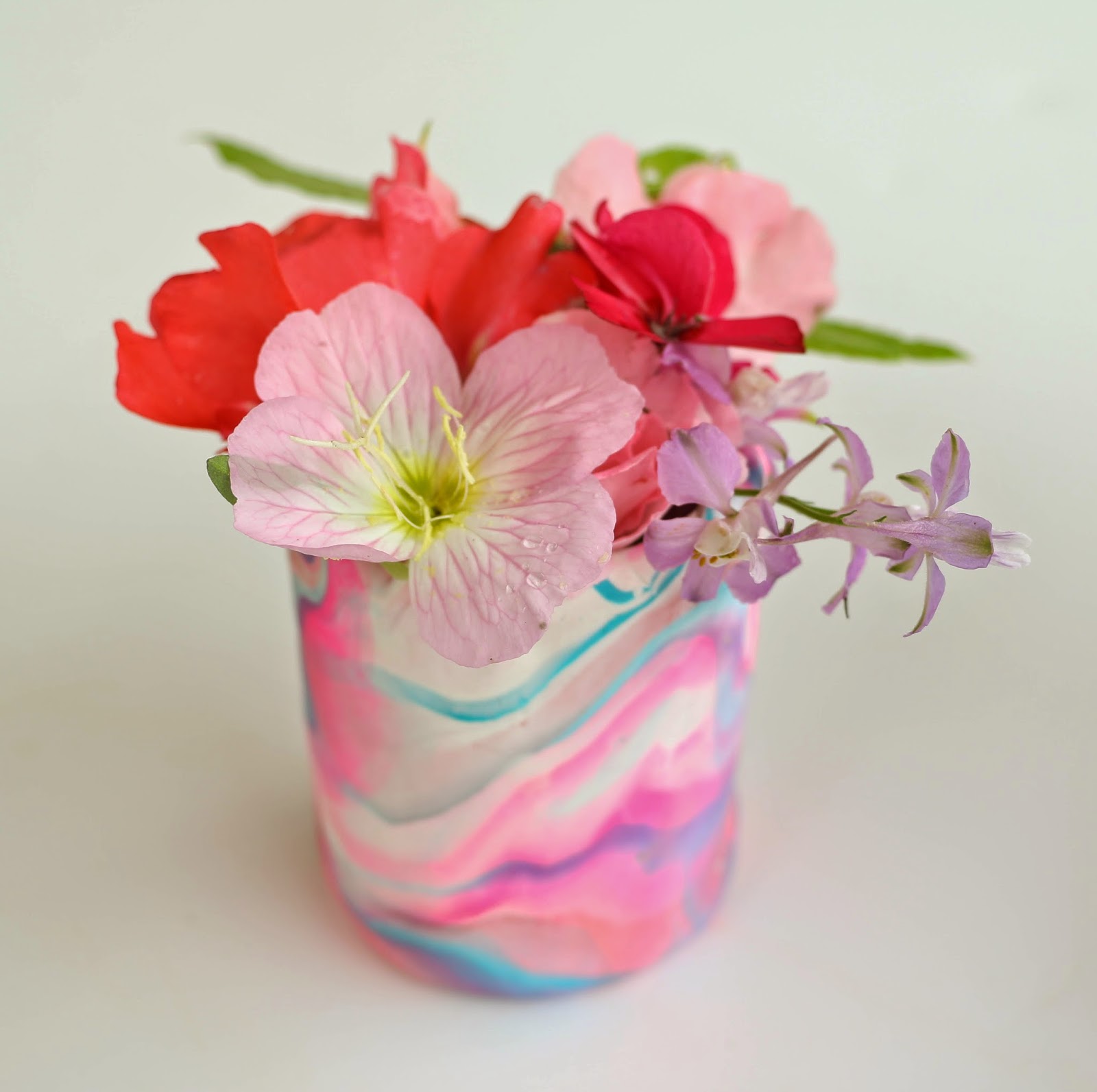 By this point (if you had been reading my blog) you should be familiar with the clay marbling technique. If not, you may want to take a look at my marble clay clock tutorial and my marble fondant cookie tutorial where I go into more depth on the marbling technique. Here are the supplies you will need to make your own marble flower vases.