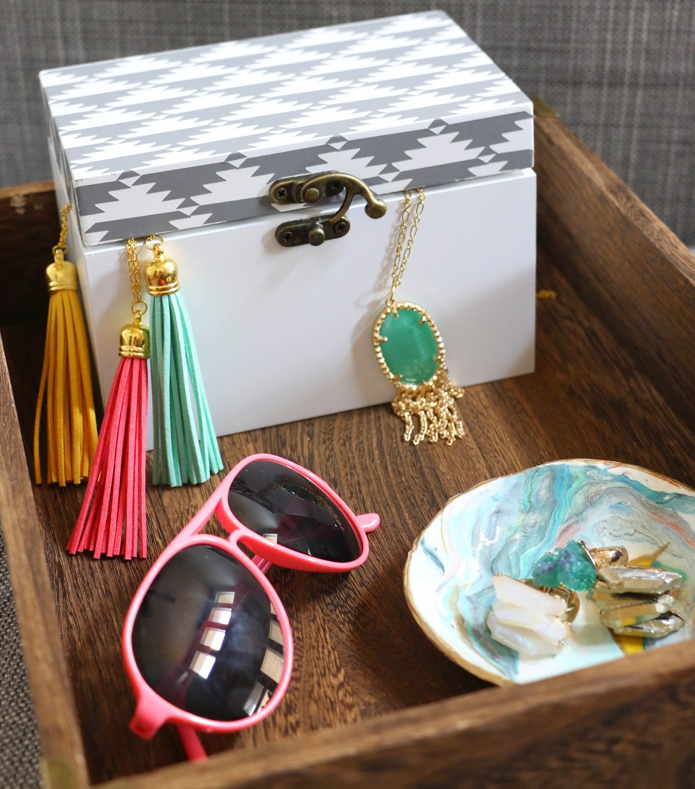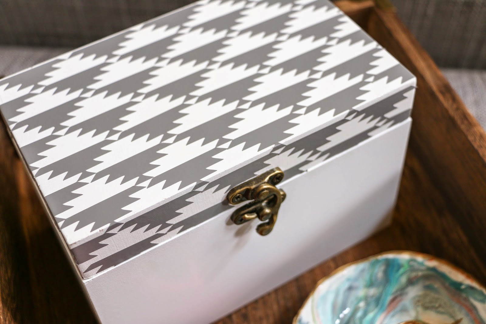 Next, it was just a matter of placing the vinyl stickers on the box top in the pattern I wanted. About 10 minutes later, I was left with a super fun little box to store all my goodies.