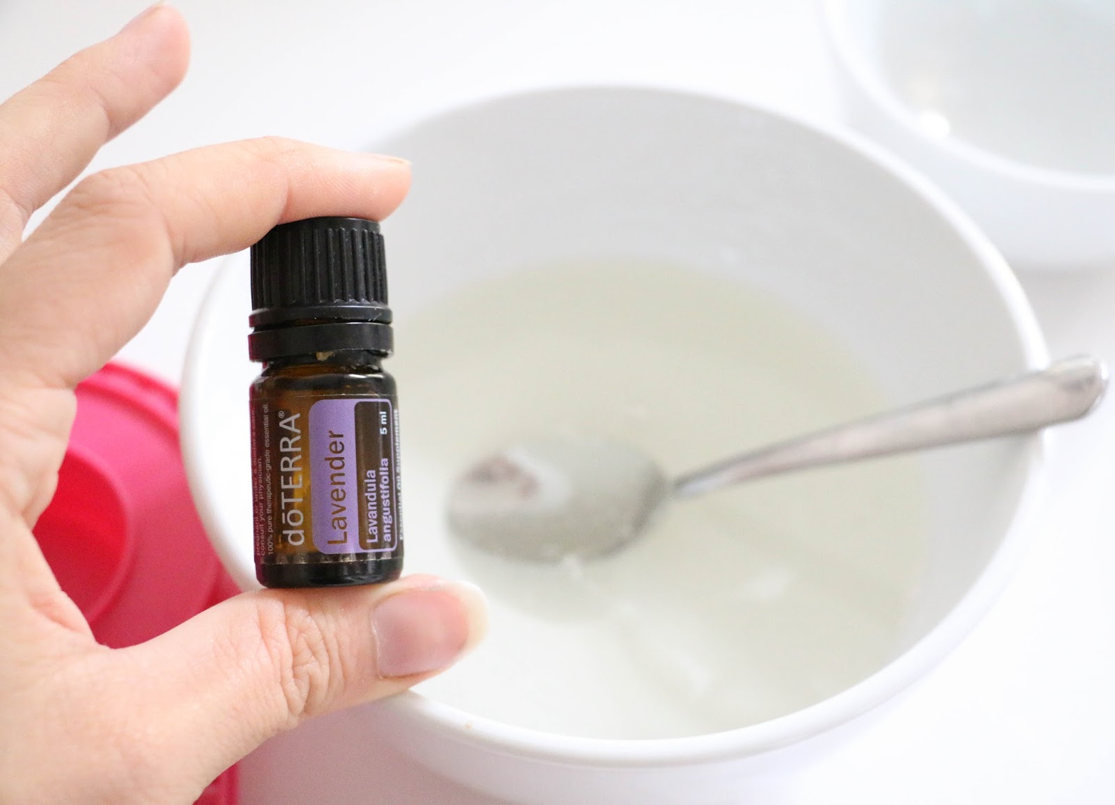 Once the soap is completely melted, you can add your oil (just a few drops is all you need for an essential oil), and a drop or two of food coloring.