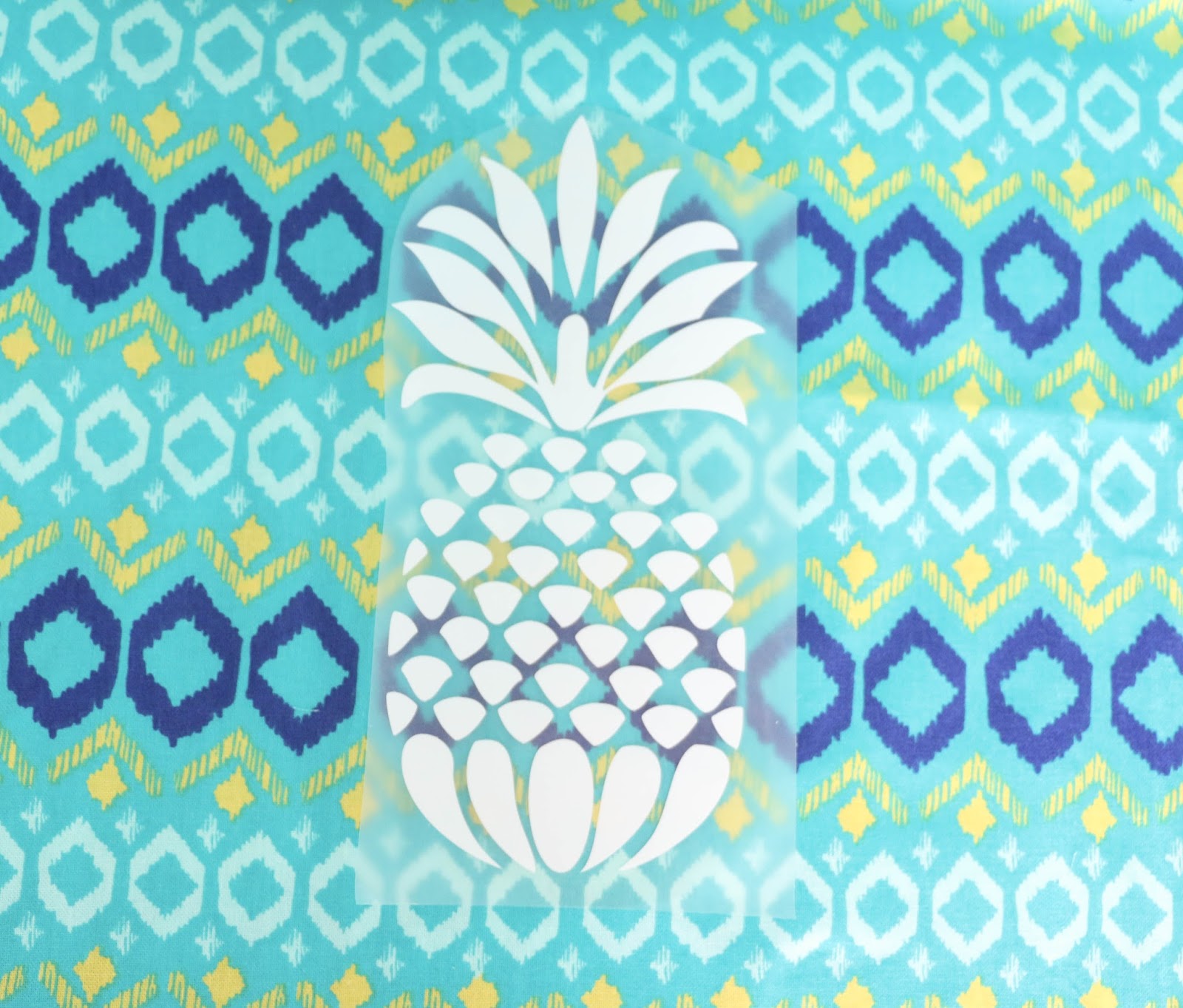 - An iron on pineapple decal (I used my vinyl cutter (like the Silhouette Cameo) and white vinyl like this to create my design, but you can buy a pre-made decal or hand cut your own if you don’t own and vinyl cutter)