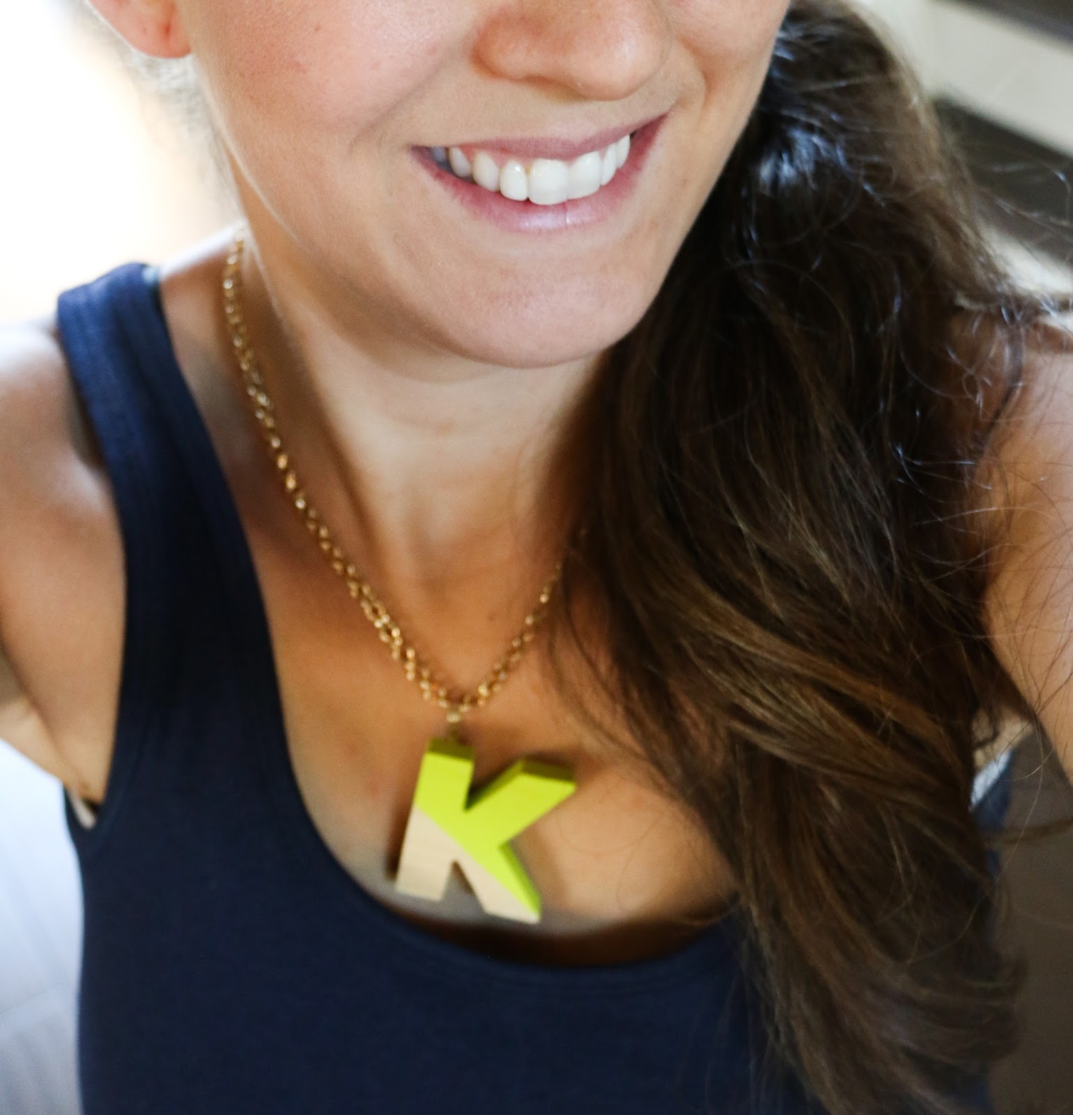 Once you have your letter painted to your liking, you will need to glue a jewelry hook on the back. You can find these in any of the major craft stores jewelry departments. I don’t know the proper name for them, but they come in different sizes and shapes. Basically you just need a flat piece to glue your letter to and a loop at the end so that you can attach your chain. Better pick up some fun chunky chain while you are there too!