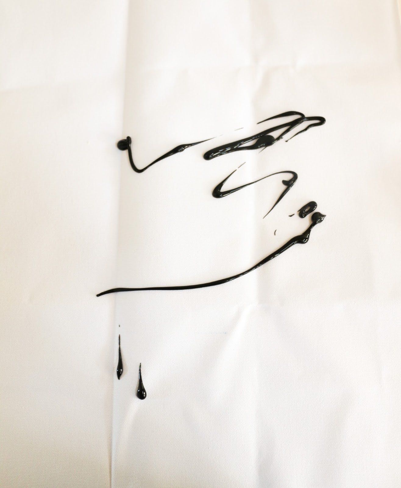 Once the paint has been squirted, fold over the fabric and gently pat the fabric sides together to squish the ink out, then gently peel the fabric apart and let dry.