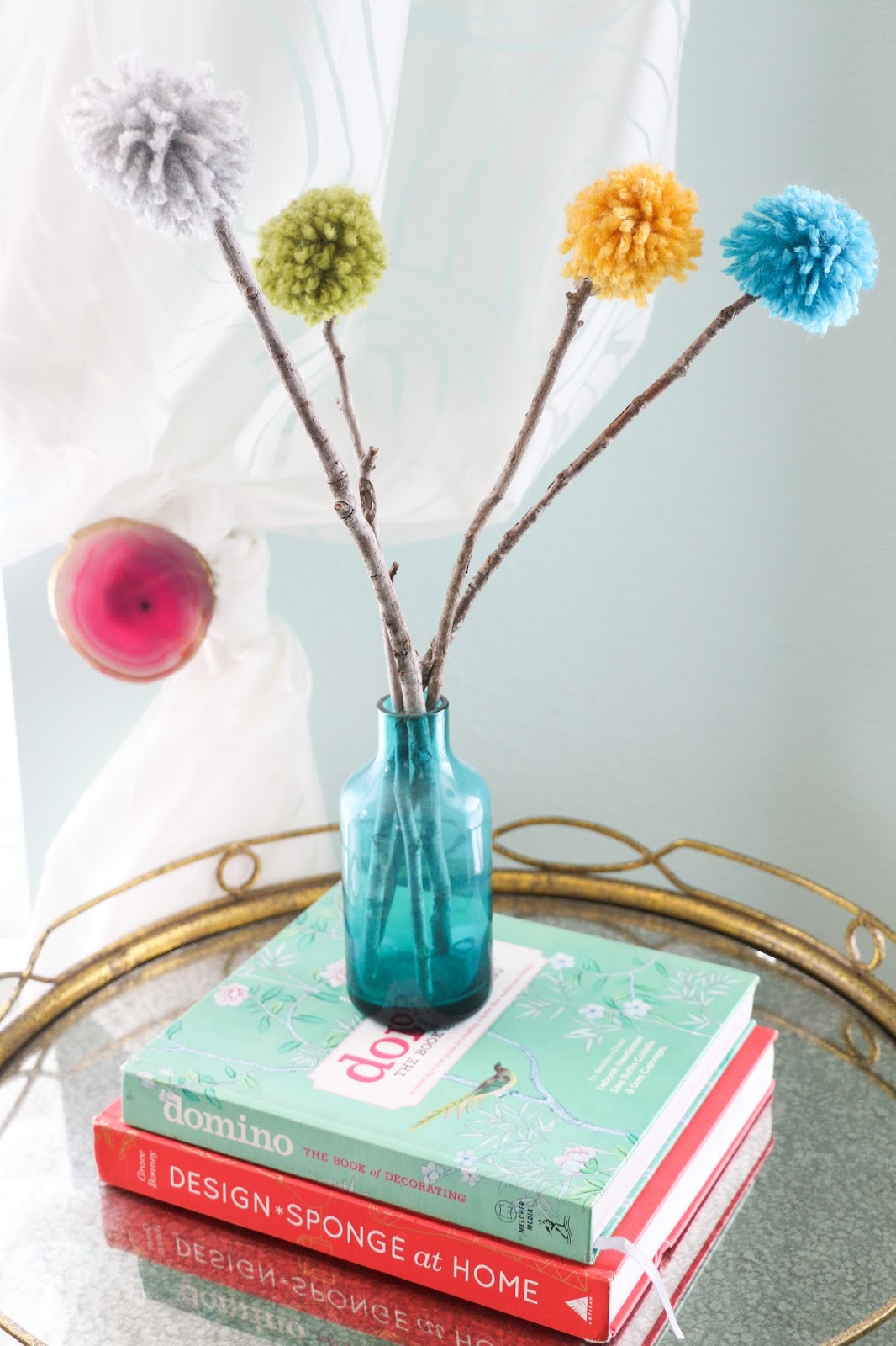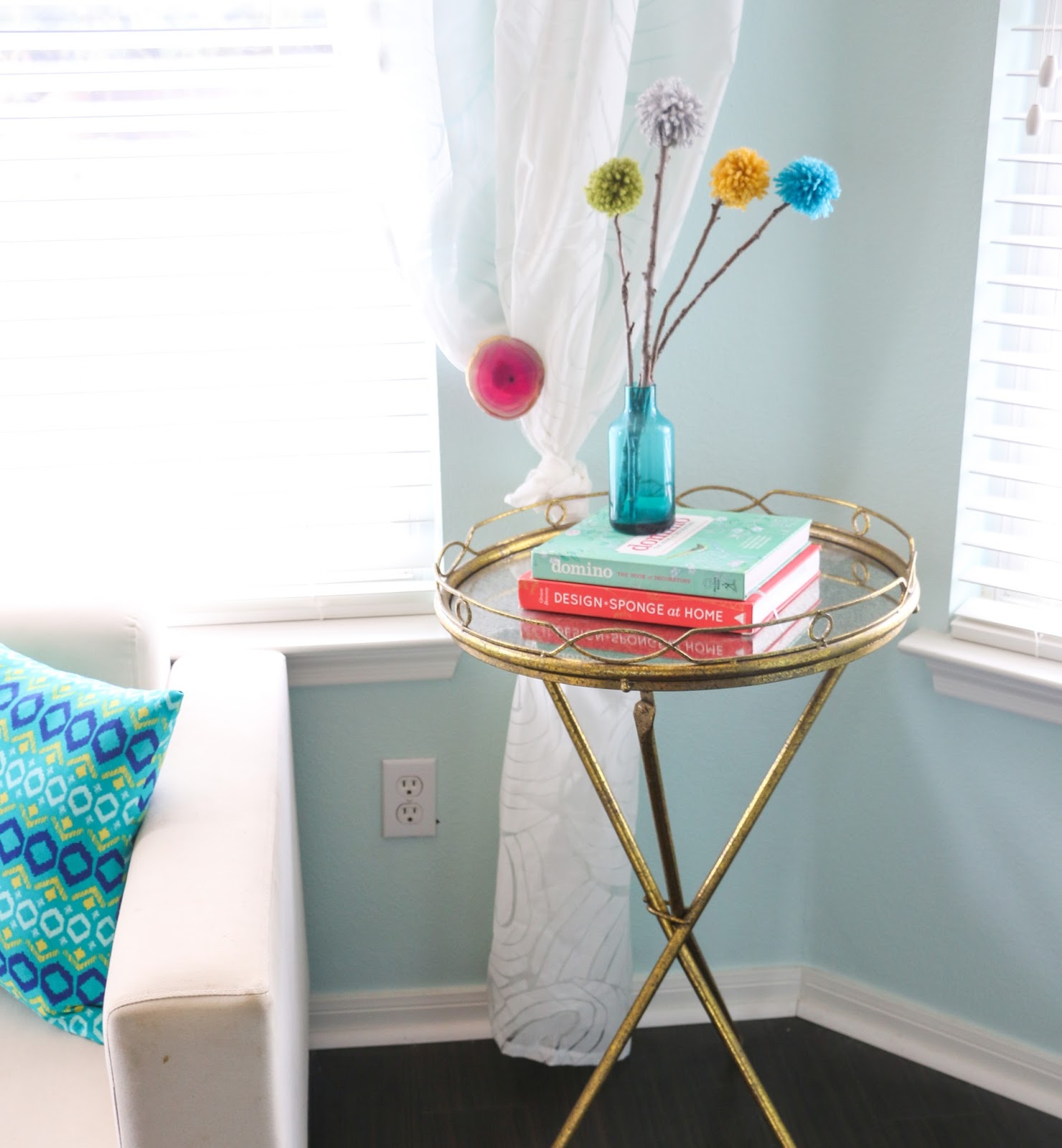 These fun gold rimmed agate curtain tie backs are ones that I made and you can get the details here.