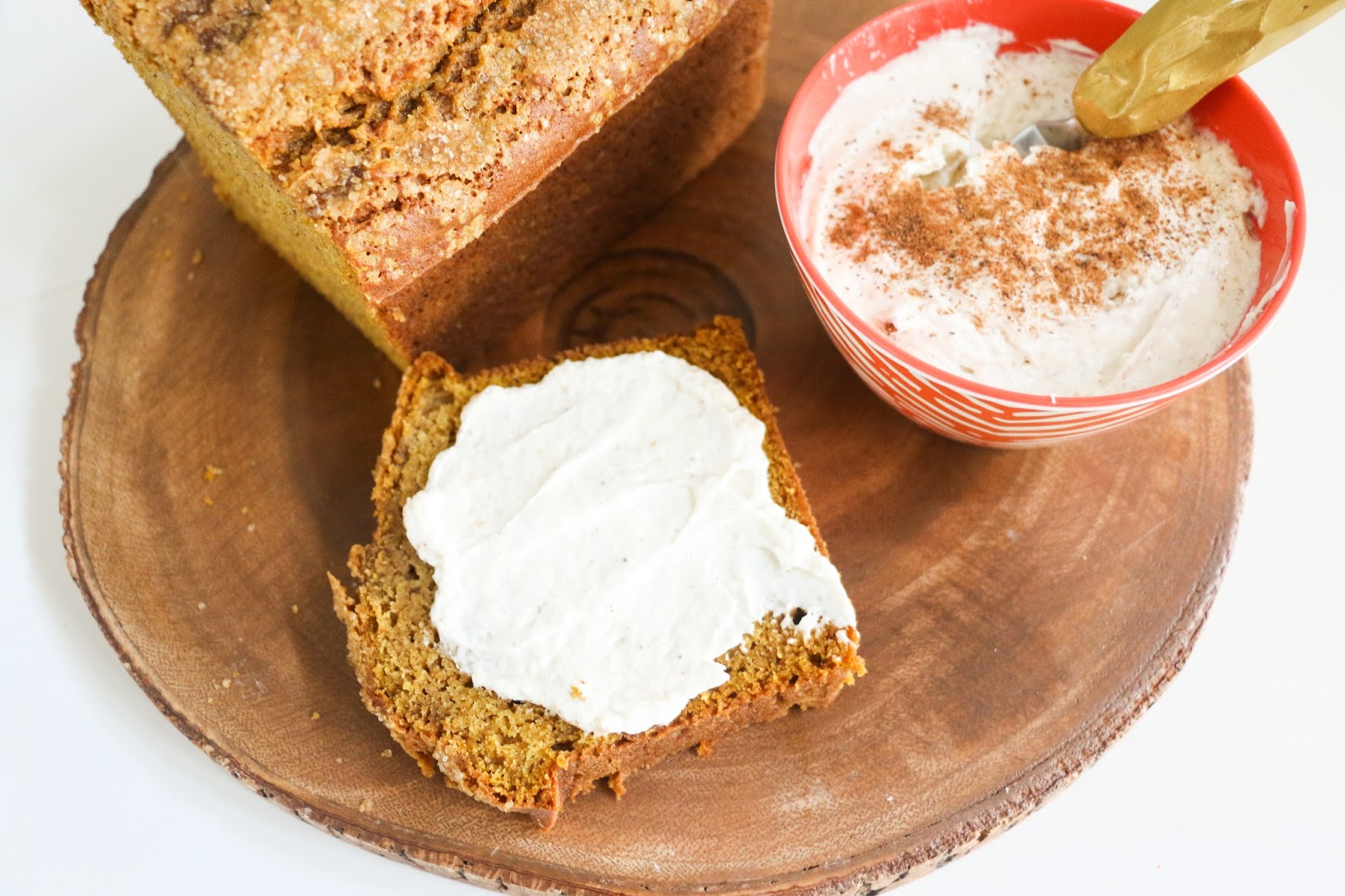 Mix all ingredients thoroughly and use to spread on your warm pumpkin bread slices.