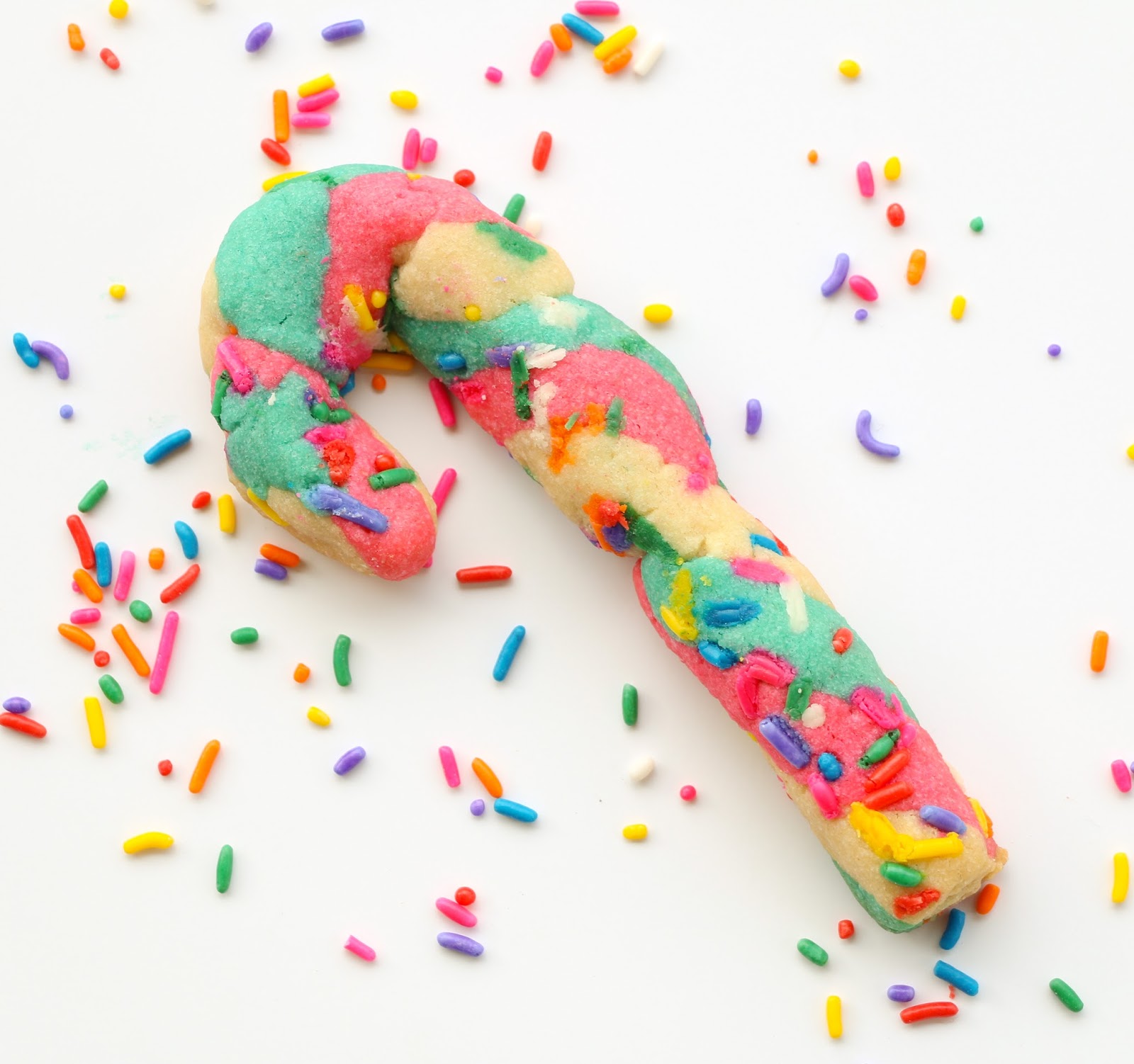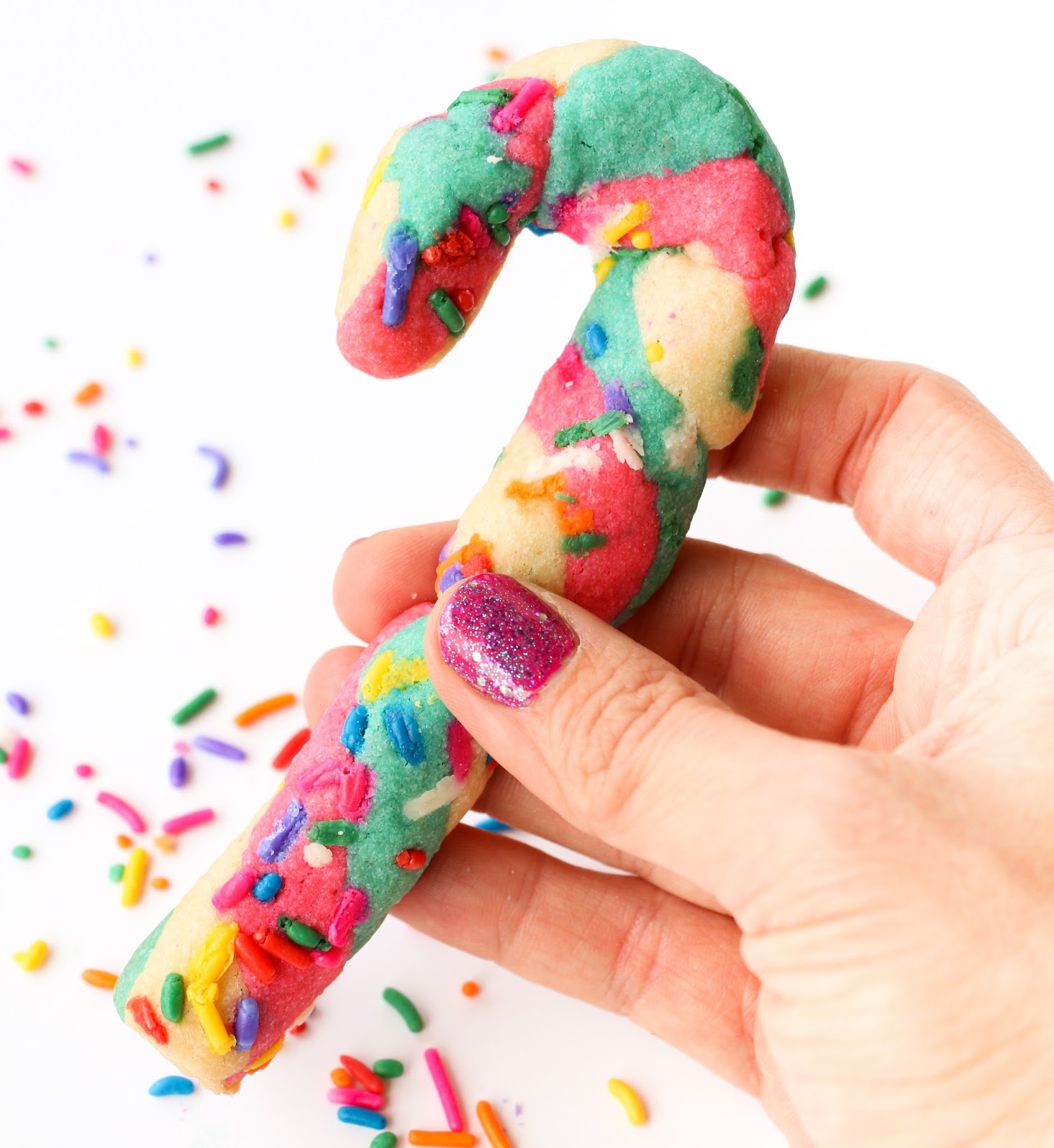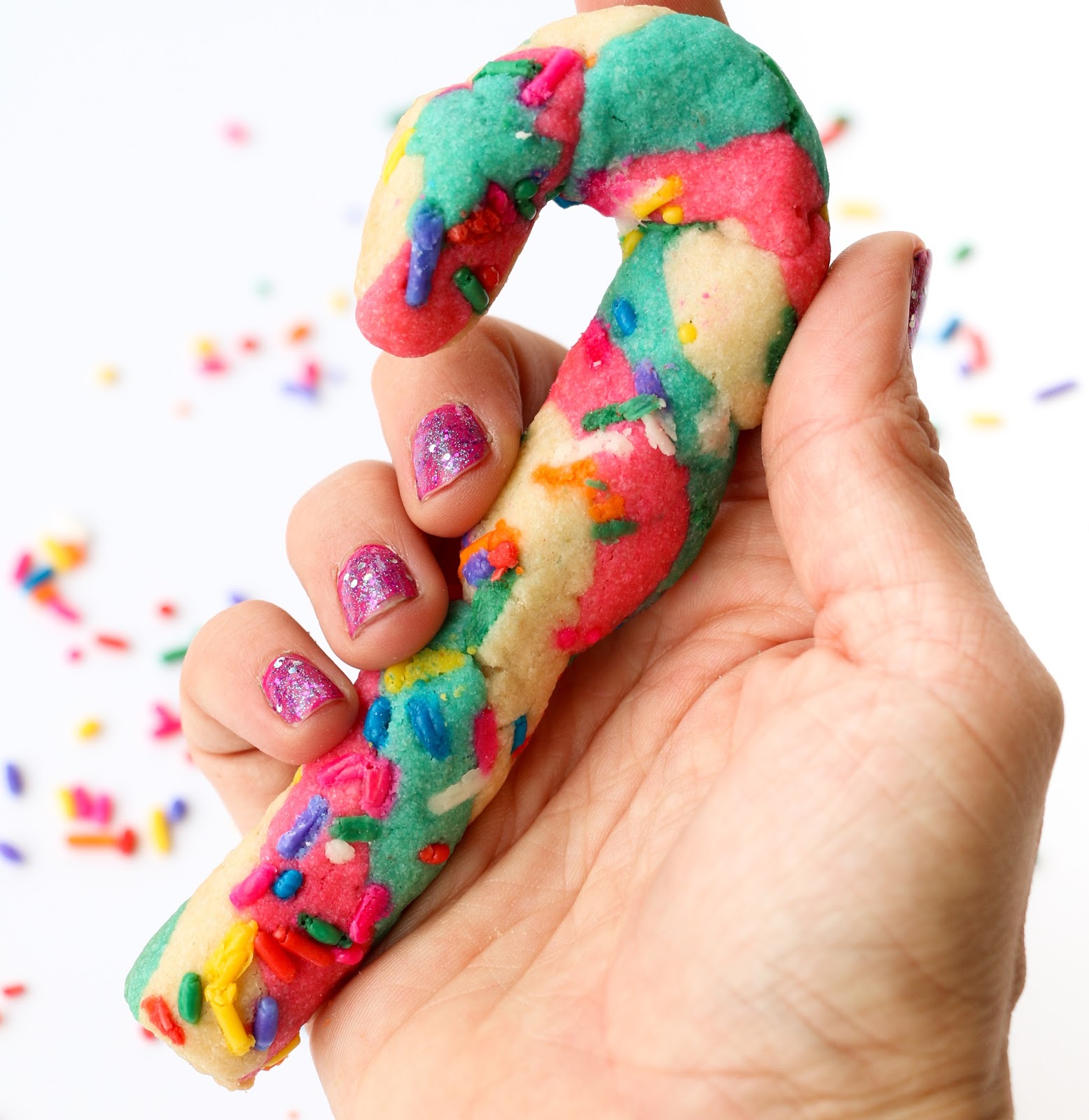 I have one last cookie idea for Christmas that I wanted to share with you today, then I will be taking a break to celebrate with the family for the next several days. My kids and I were making a few cookies for Santa last night and we decided to make our traditional candy cane swirl sugar cookies, but with a slight twist. Instead of sticking to traditional red and white candy canes, we dyed the cookie dough colors of red, green, pink, and blue and made multi swirl canes. We even added a bit of fruit punch (cherry, pineapple, and coconut) candy flavoring I had to the sugar cookie dough and added a few sprinkles. The resulting fruit punch flavored unicorn cookies were a smash with the kids, and I have to admit I loved them too!