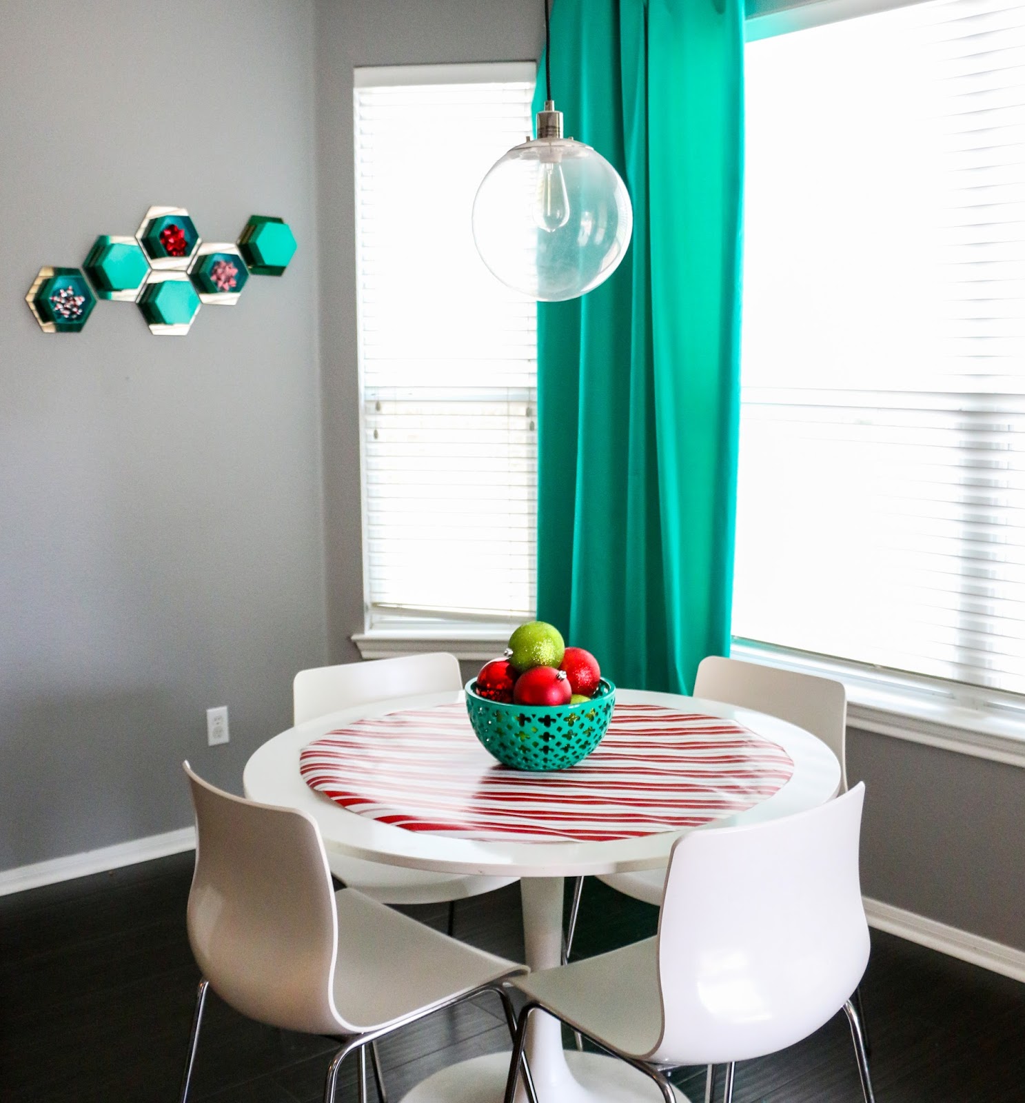 Luckily my kitchen in fairly neutral with pops of emerald green, so I don’t really have to do much to turn it into a Christmas kitchen!