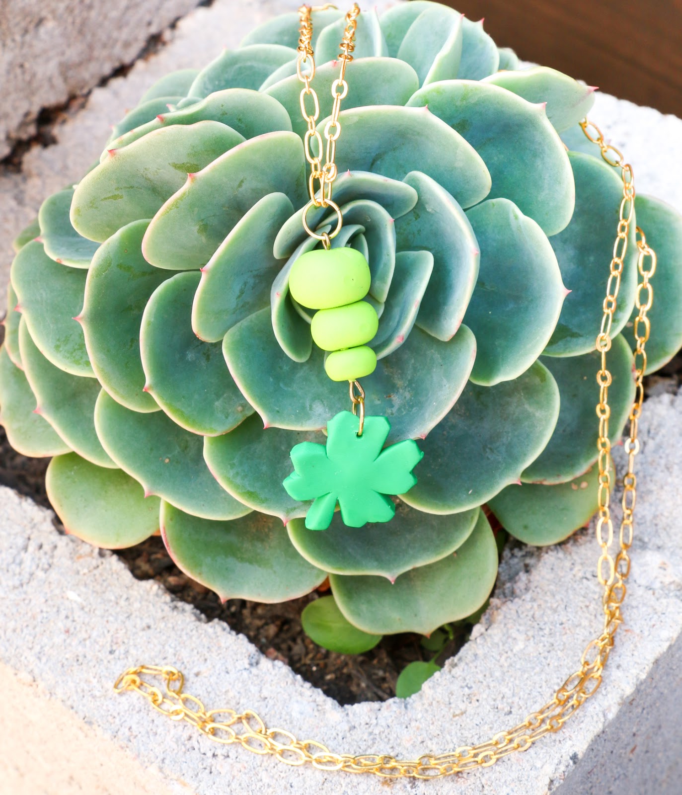 Now since that was so easy and you already have all the supplies, make a few more for your friends! If you want to cut costs on this project, you could easily buy plain costume jewelry chain at the craft store for less (about $2.99 for 2 necklaces worth of chain) and even get rid of the light green beads and eye pins and make just a plain clover necklace. Since I am a craft hoarder, I actually had all these supplies already, but I realize that not everyone is as obsessed with craft supplies as I am!