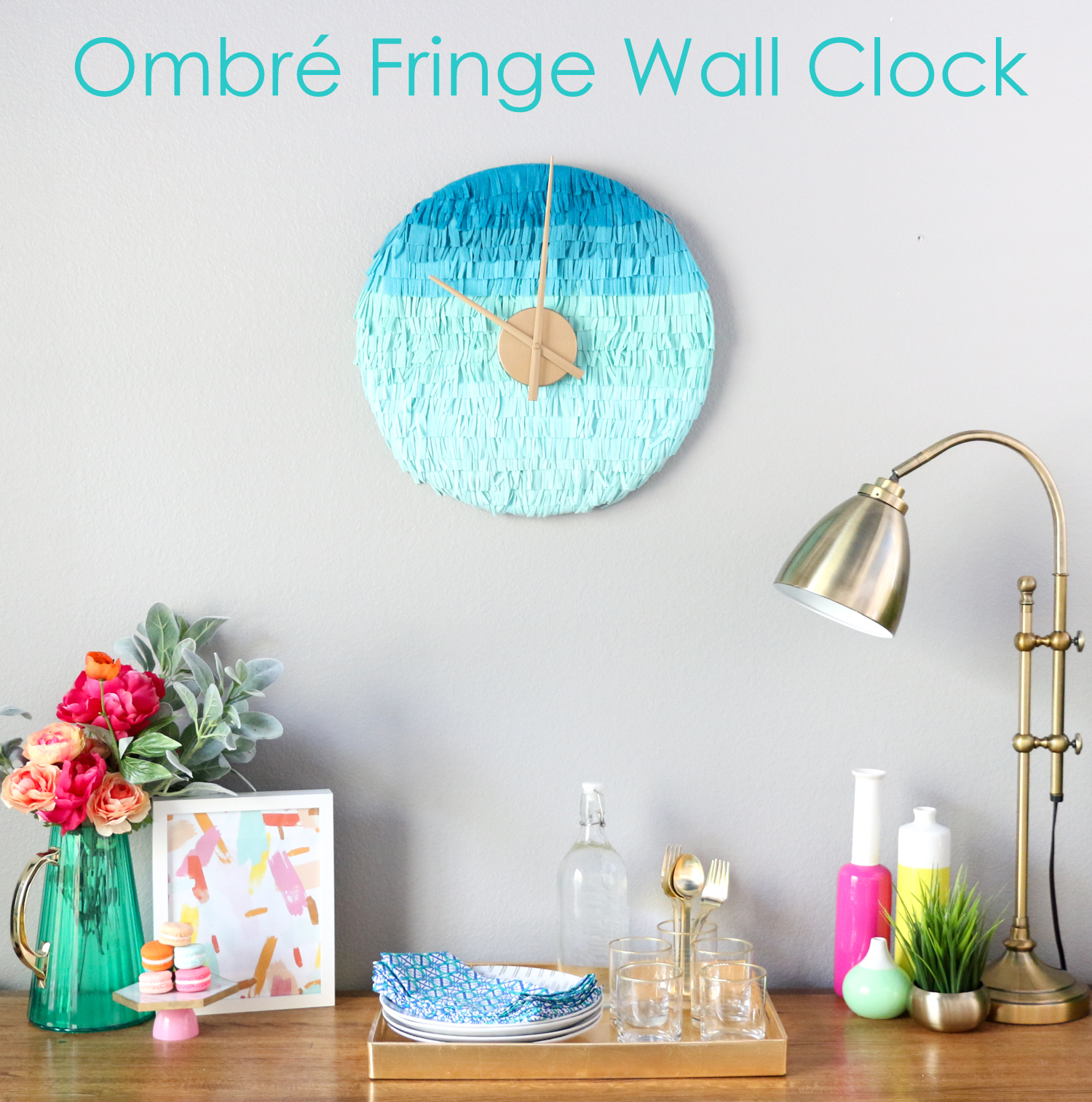 DIY Ombre Felt Fringe Wall Clock - Make your own wall clock from fringe cut felt - makes a beautiful focal piece for your wall - Home Decor - Target - Gold and Blue