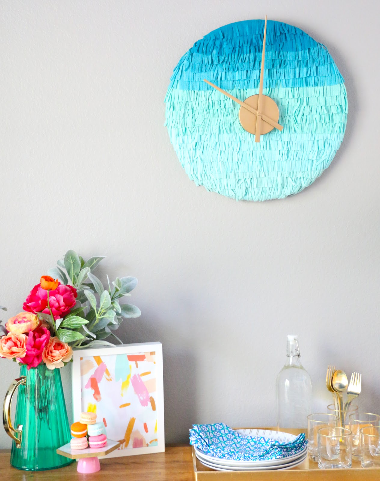 Just look at all that texture! And those shades of seafoam, mint, turquoise, and teal have me going all heart eyes. But don’t be intimidated, this clock is super easy to DIY.