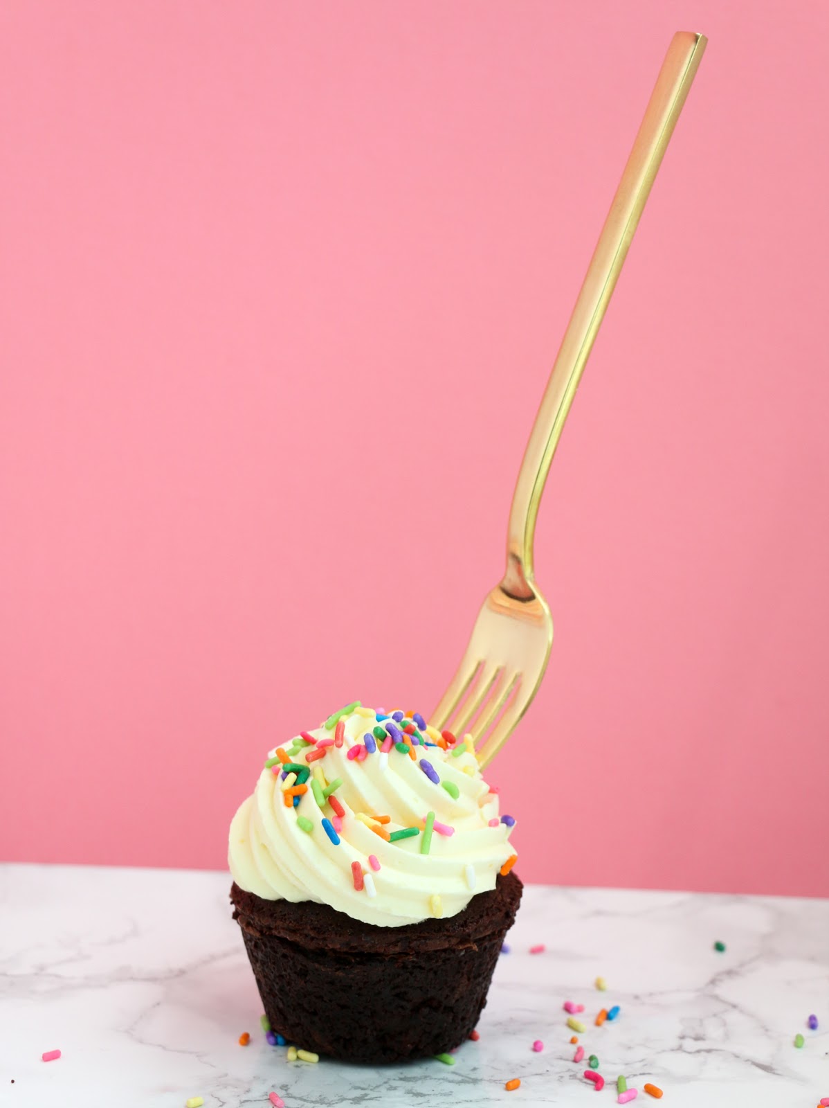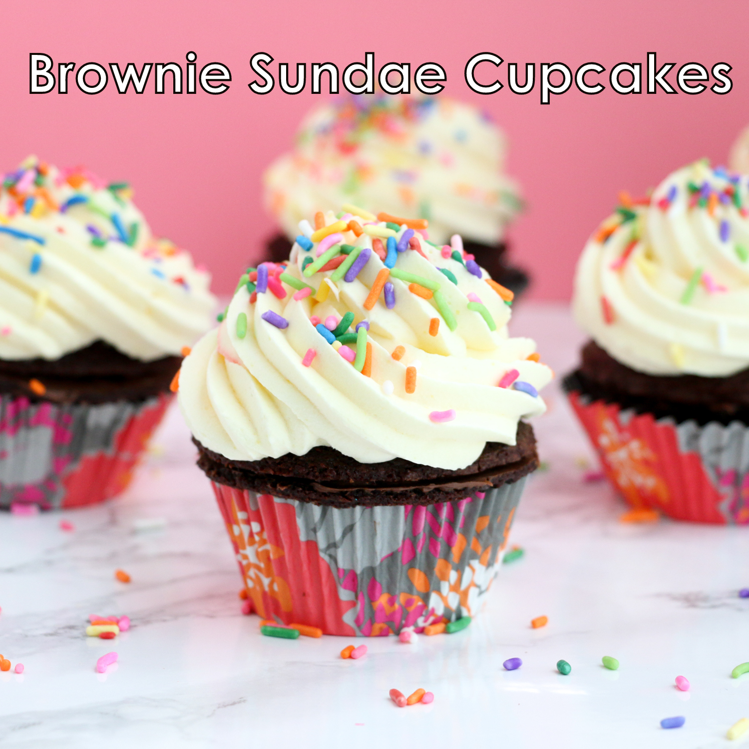 Looking for a new way to eat ice cream? How about inside a brownie that looks like a cupcake? Yeah, you heard me right. A rich chocolaty brownie cupcake filled with ice cream and topped with vanilla mousse and sprinkles. That right there is perfection my friends. Don’t believe me? Just take a look for yourself.