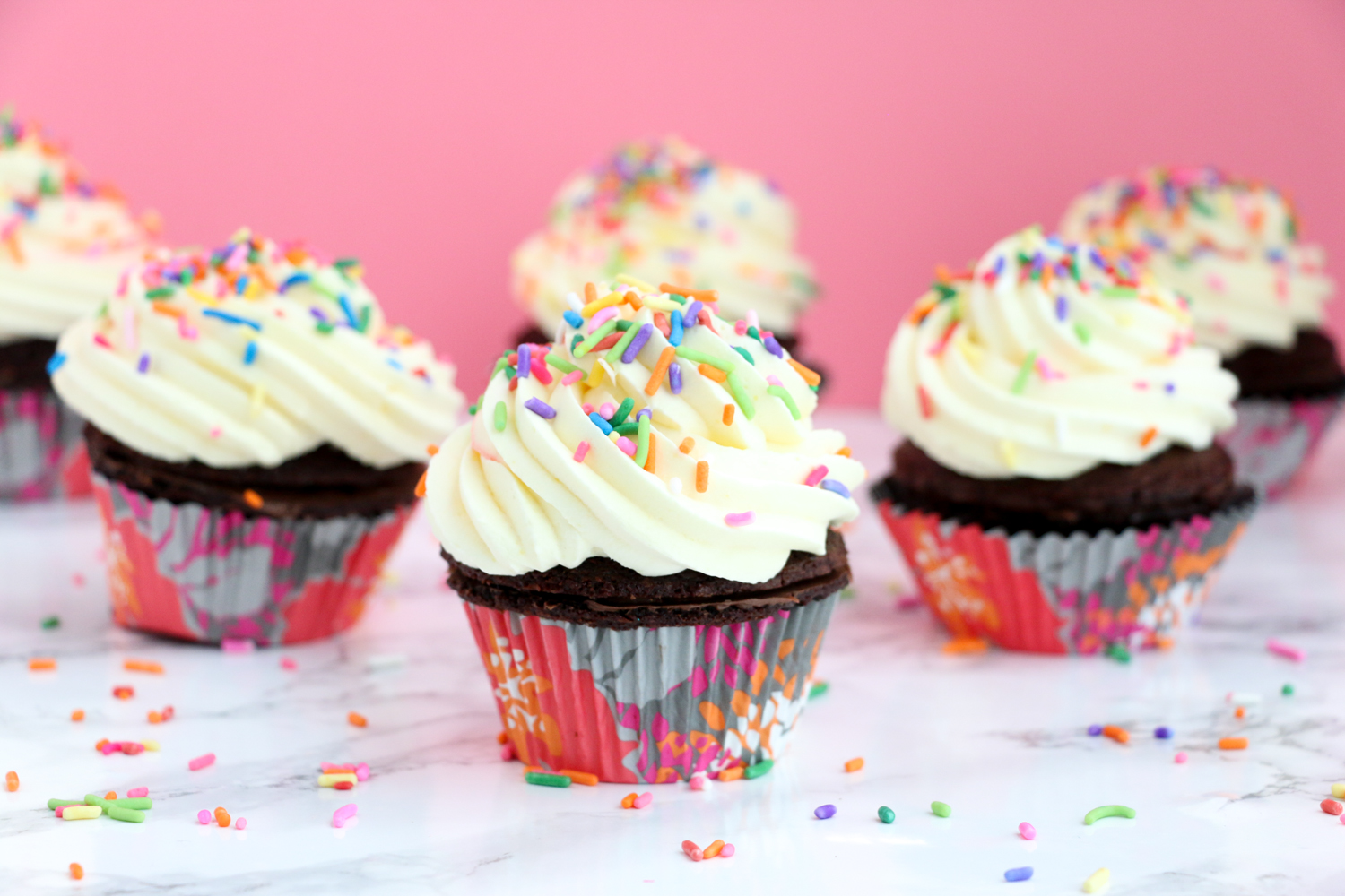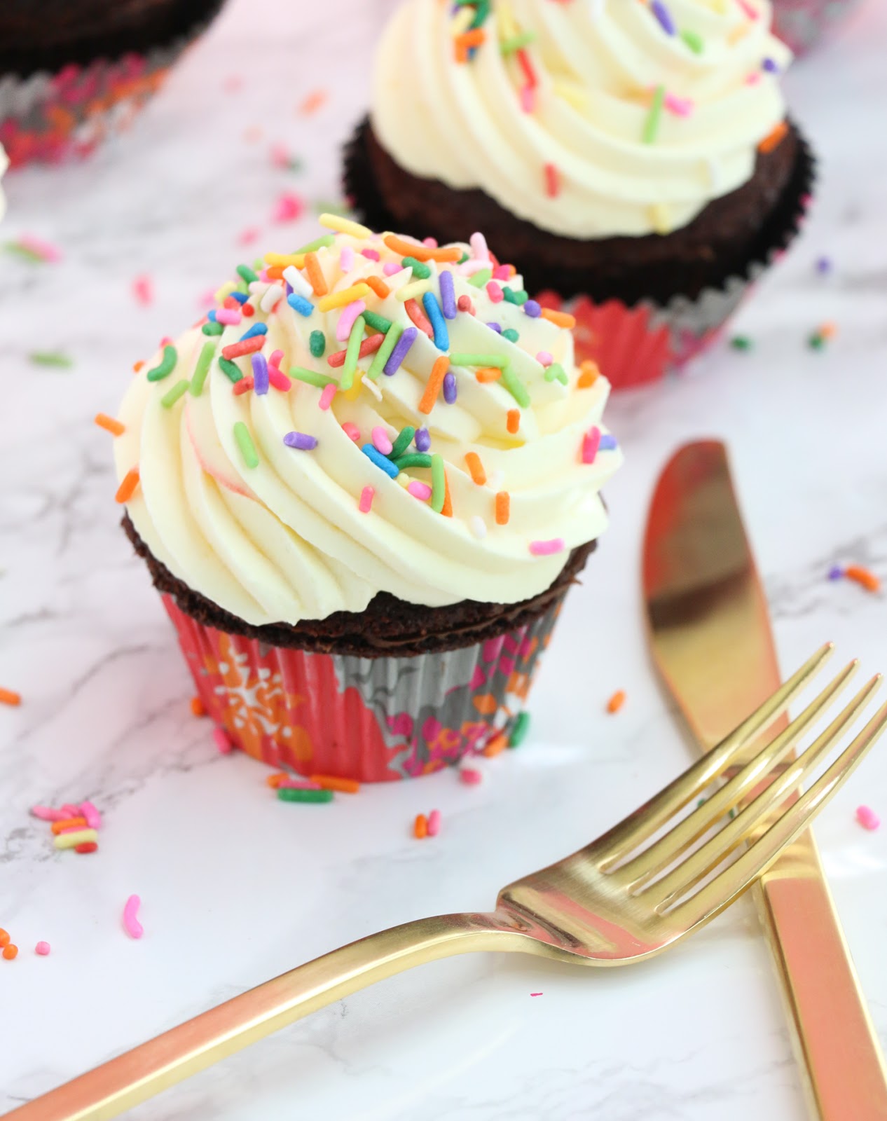 bag, pipe the frosting onto the cupcakes, and add your sprinkles. This vanilla