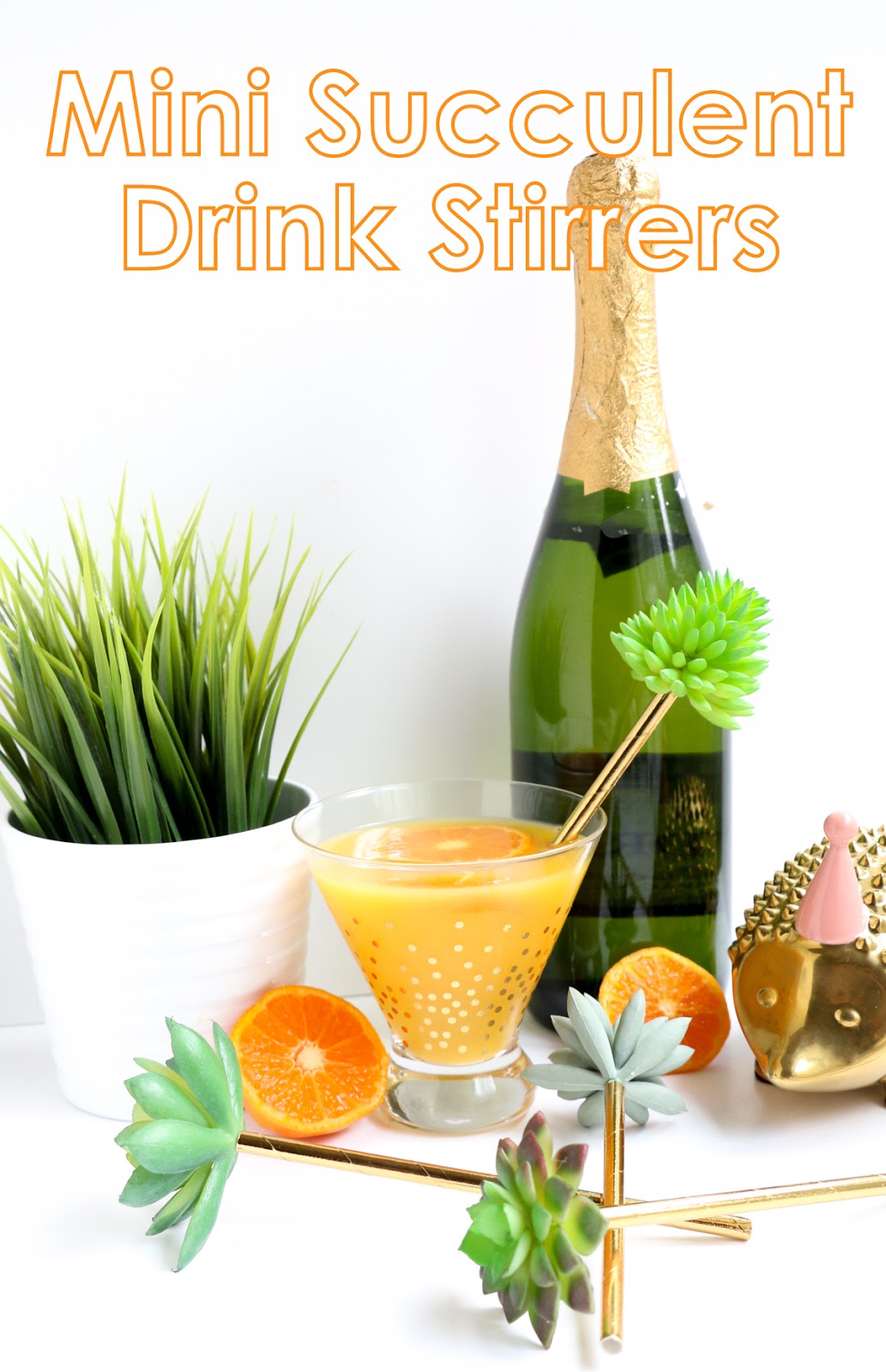 I recently was introduced to these magical little plants known as mini faux succulents. They are small, look like the real thing, and they are just perfect for crafting with. Now I have seen regular sized faux succulents before, but these little mini ones got my mind racing with possibilities. Today I wanted to share a super simple craft project (I almost feel bad calling it that since there is no real crafting involved) using these mini succulents. Drink stirrers!