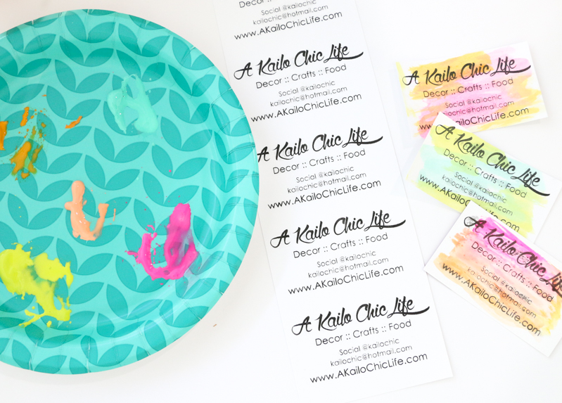 If you read my post on Friday, then you know I’ll be leaving Wednesday to attend the SNAP conference in Salt Lake City. It’s a craft/DIY blogger conference and it looks like it should be really awesome! One of the first rules of attending a blog conference is…you don’t talk about the blog conference. Just kidding. It’s that you need to bring business cards! I have two options I’m working with right now and both are a little DIY (because that’s what this conference is all about dudes)! So, I wanted to share my easy-to-make watercolor business cards just in case you need to make a few of your own someday and want/need/desire some ideas.