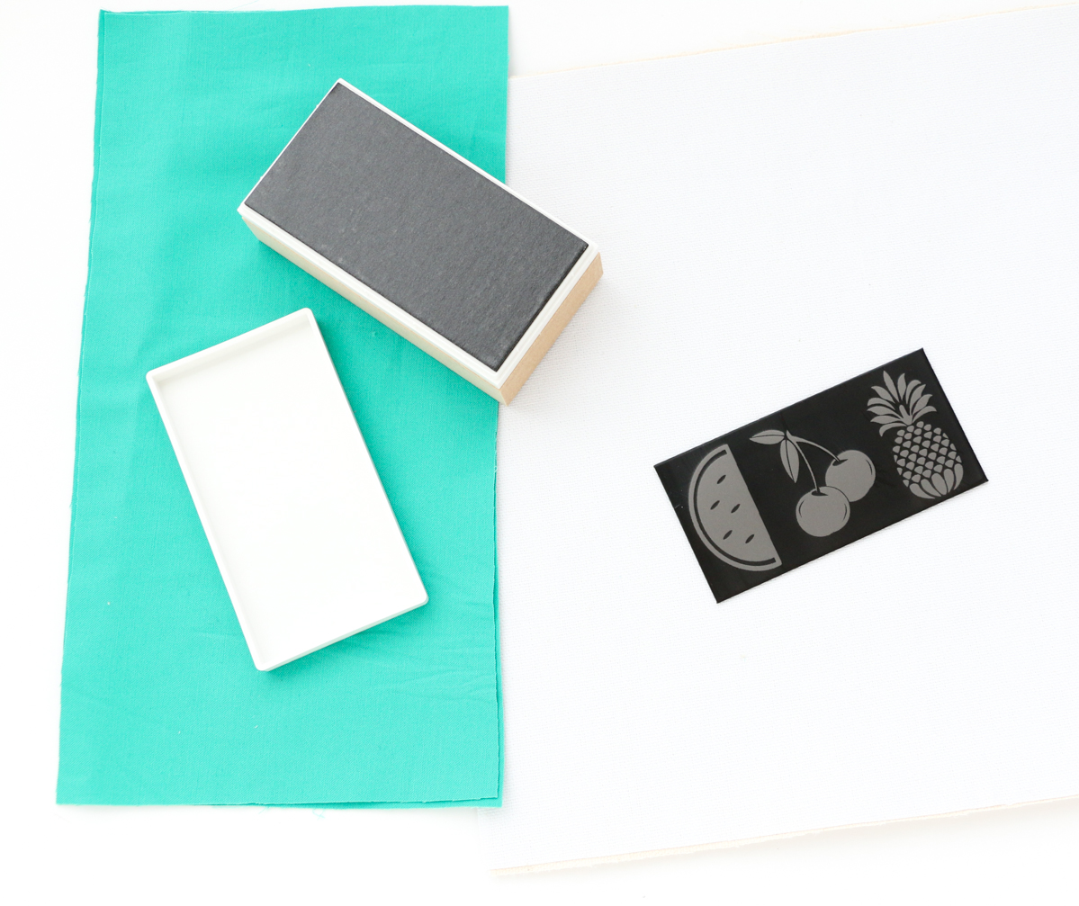 Whether you will be making your own pouch or not, you will begin the same way, by making your stamps. I used images of a pineapple and watermelon slice. You can save these here: