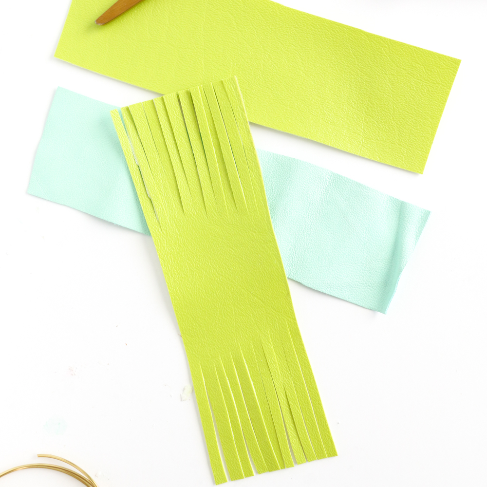 - Colorful faux or real leather (the lime green is from the craft store and is fake, but the mint leather in the middle is real lambskin leather that I picked up when I was in New York in February. Hubba, hubba.)