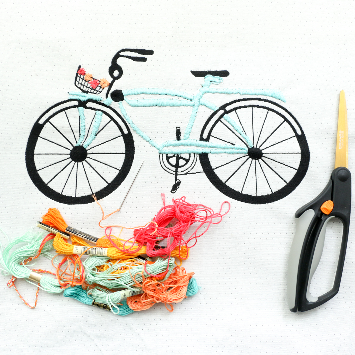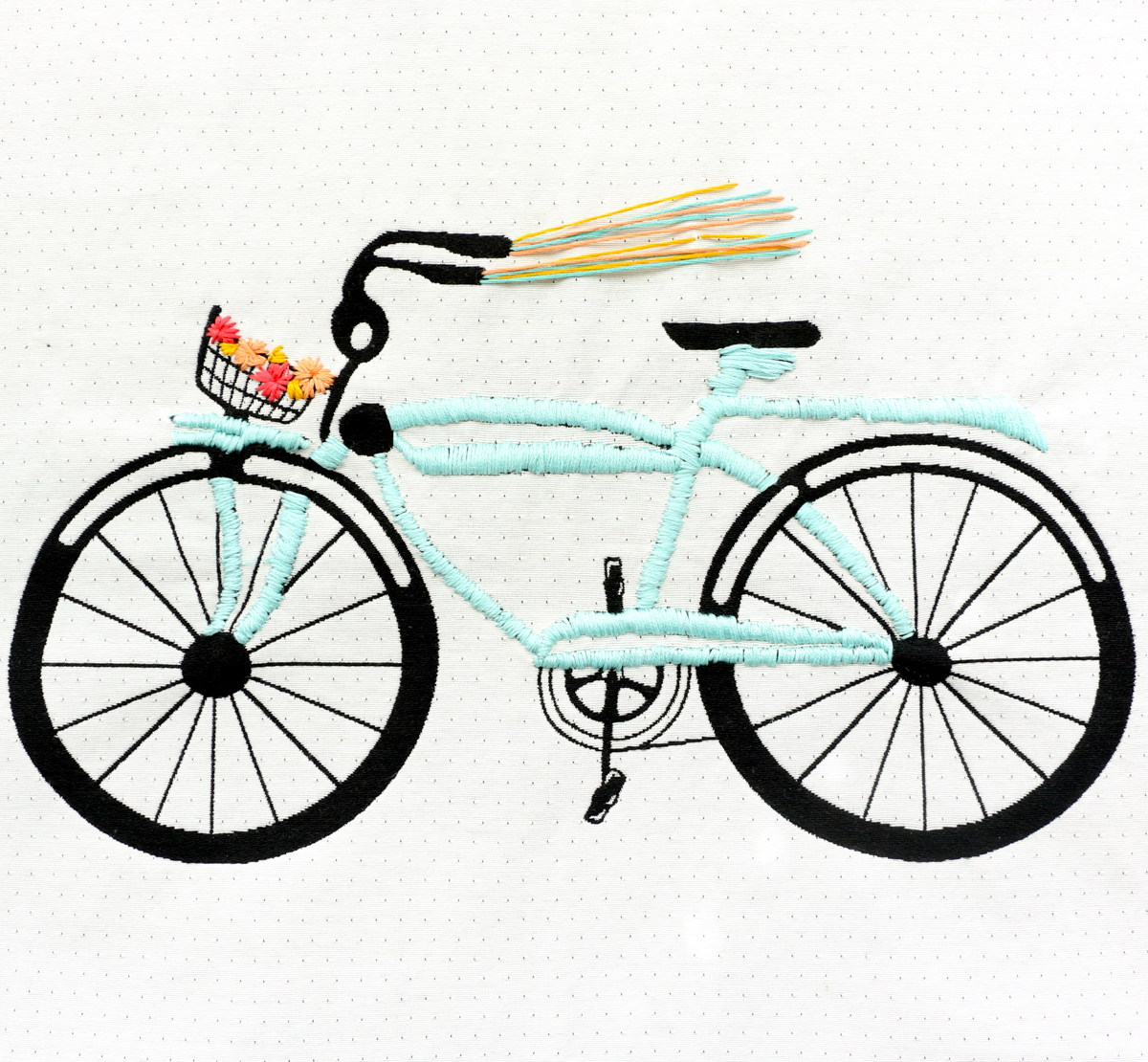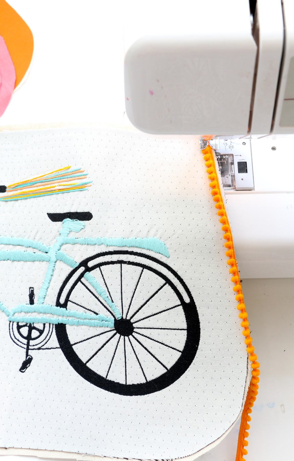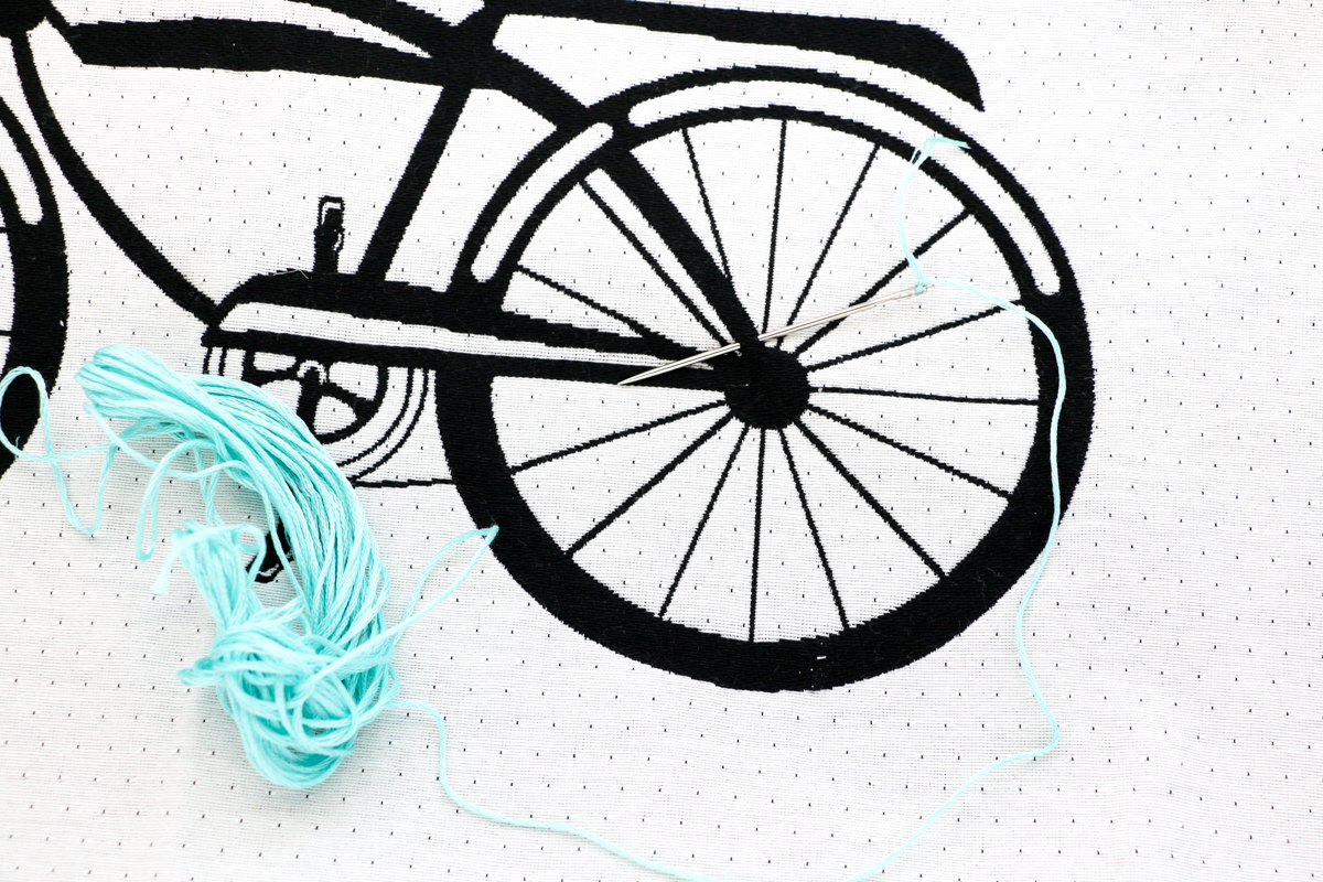 Once you’ve finished embroidering the bike, it’s time to