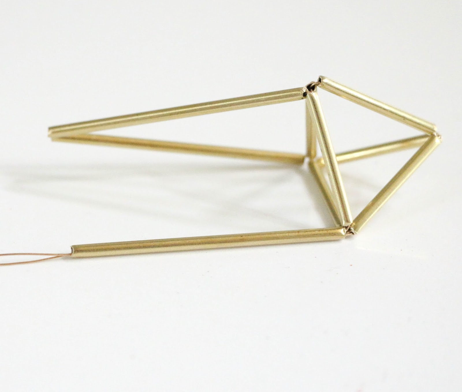 On goes the last small tube and the wire gets threaded back through the opposite side to create a pyramid.