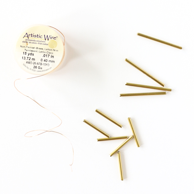 Begin by measuring and marking your piece of brass tubing into the following: 6 – 1″ long pieces and 4 – 1.5″ long pieces.