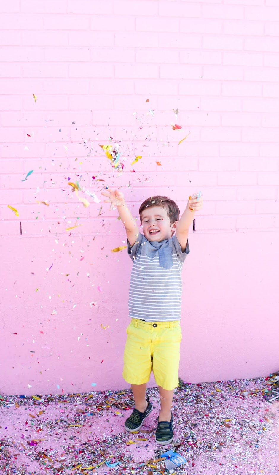 My kids and I are in Houston for a few days on one of our last summer adventures and we finally made it to the Sugar and Cloth color wall to take a few pictures. It was more fun than I thought it would be and the kids had just as much fun as me posing in front of all the colors. The bonus? That all the photos turned out so colorful and pretty! If you are in Houston you really must stop by and snap and few pics. Just take a look at the fun we had!
