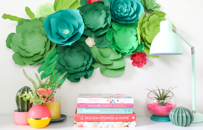 comes. This paper succulent wall is such a fun alternative to those paper flower walls you see all over Pinterest. It’s time to give oversized paper succulents a little love.