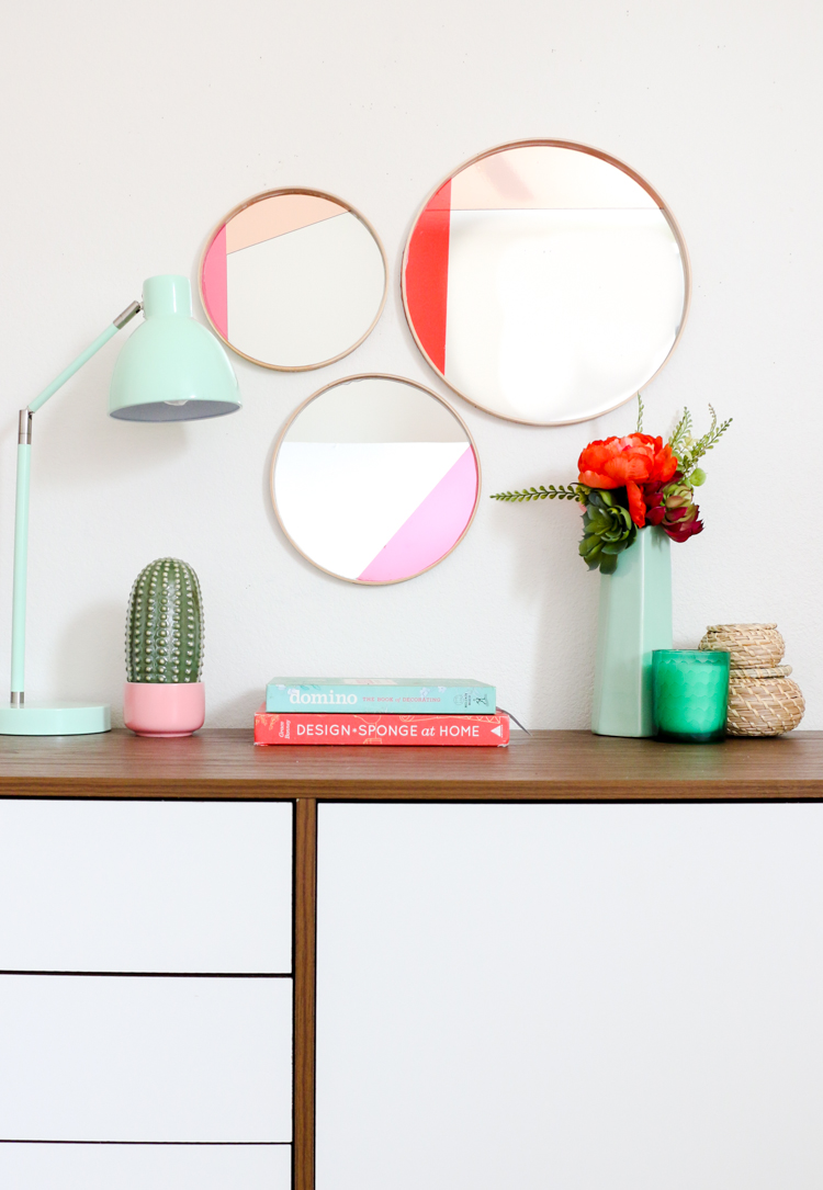 They have a little touch of color but the DIY color blocked mirrors still bounce