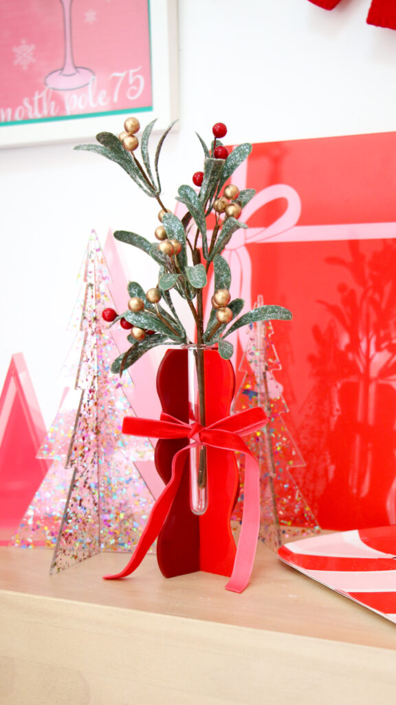 I created the cutest DIY color blocked modern acrylic bud vase using my new xtool M1 ultra machine. The combo of maroon and red is just perfect for the holidays. This acrylic bud vase is the perfect gift to make for your friends this year. The M1 ultra is a diode laser, so it can cut dark opaque acrylic. This machine can also cut wood, etch, engrave, print, and comes with an ink head to print on wood, a blade cutter to cut fabric and paper, and even a pen tool to draw with! The craft possibilities are endless!